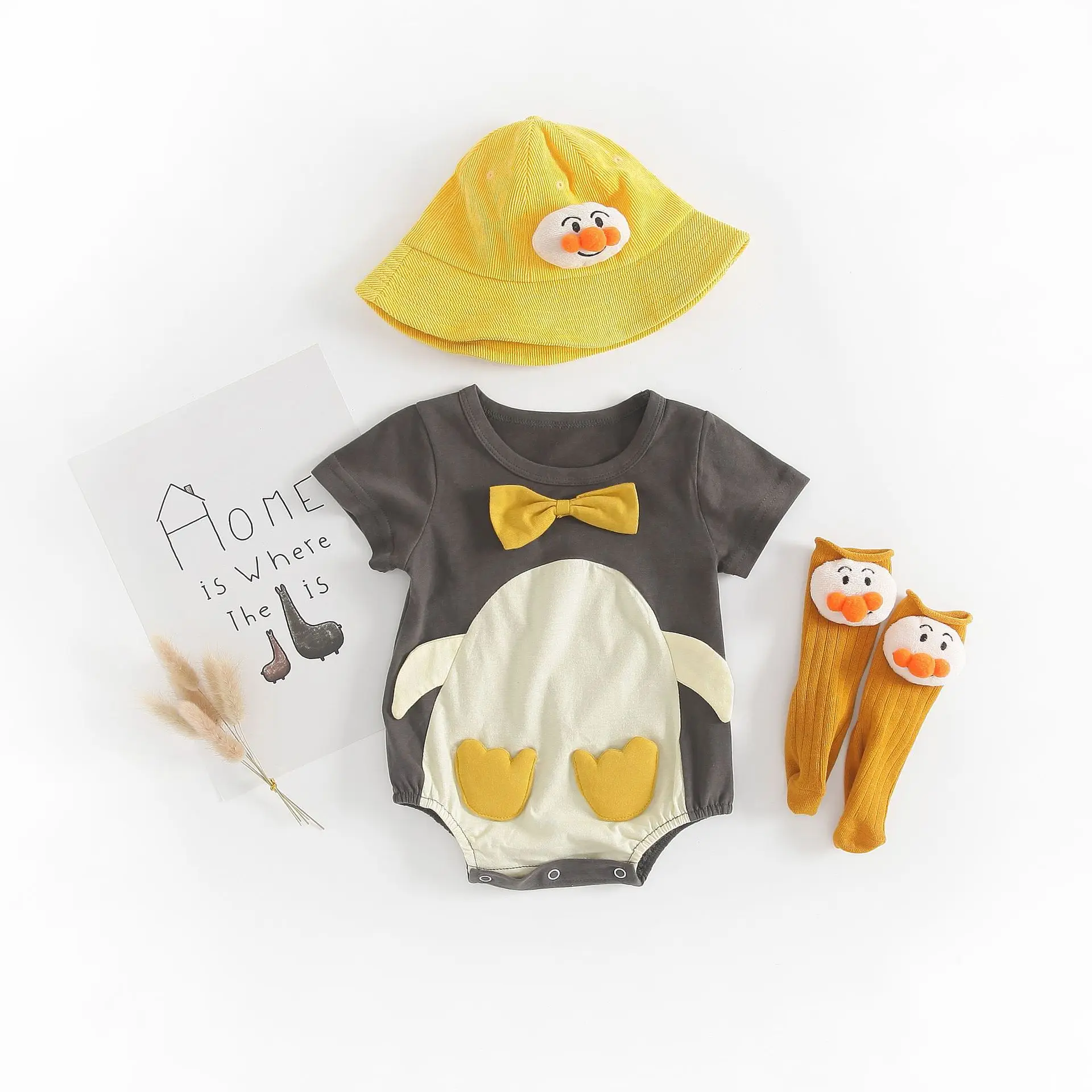 Musim Panas Bayi Baju Monyet Penguin Hewan Lucu Bayi Baru Lahir Pakaian Anak-anak Lengan Pendek Pakaian Kapas Anak Laki-laki Gadis Pakaian 3-18M